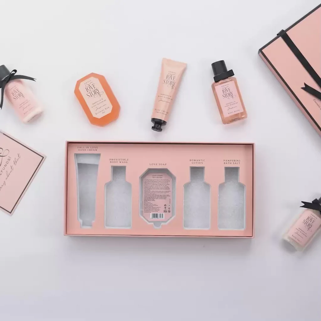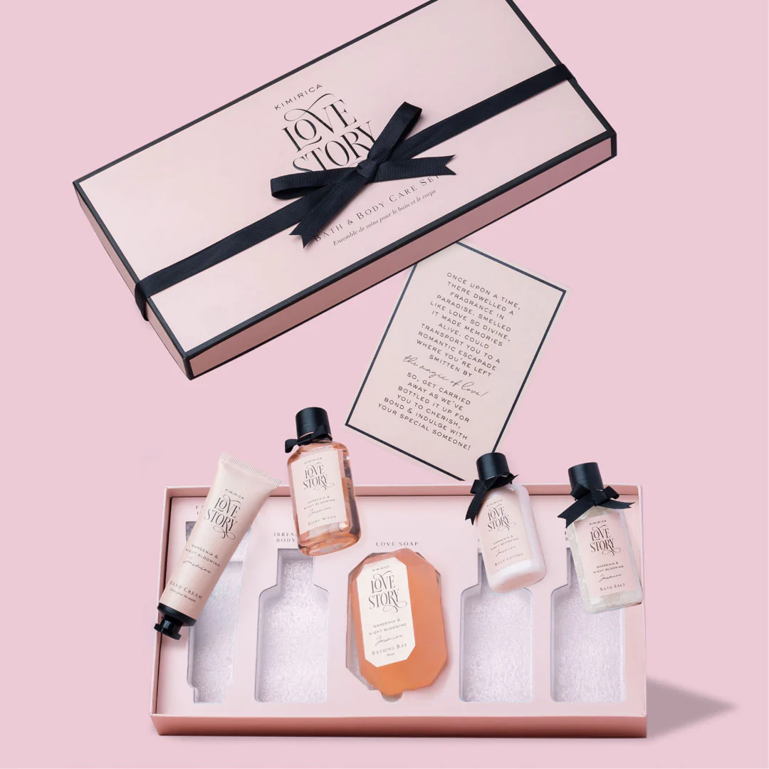 パッケージからキュンと気持ちが上がるセットは自分へのご褒美、大切な人へのギフトにも。ロマンティックな冒険へと誘います。5 種類のコレクションでホテルライクなバスタイムがお楽しみいただけます。