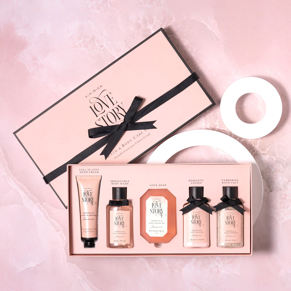 ガーデニアとジャスミンのロマンティックな香りが広がるラブストーリーシリーズを楽しめるミニセット。